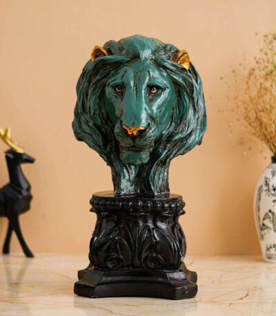 Handmade Lion Head Statue Stone Finish Animal Figurines Gifts Antique Design for Home Decoration (green)