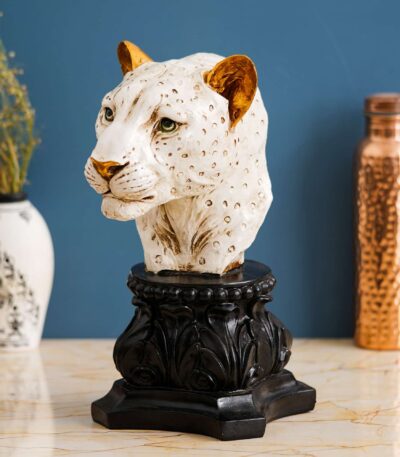 Handmade Lioness Head Statue Stone Finish Animal Figurines Gifts Antique Design for Home Decoration(White)