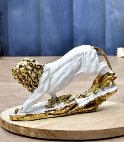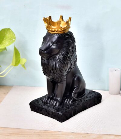 Lion Statue with Crown Sculpture Showpiece Figurine for Home Decor Living Room