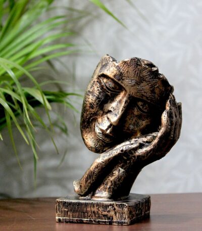 Resin Handcrafted Human Face Design with Hand on Face Decorative Showpiece Figurine, Multicolour