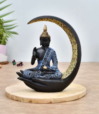 Antique Big Meditating Moon Buddha Statue Showpiece for Home Decor - Living Room - Office - Gifting - Lord Buddha Idol Polyresin Decorative Figurine