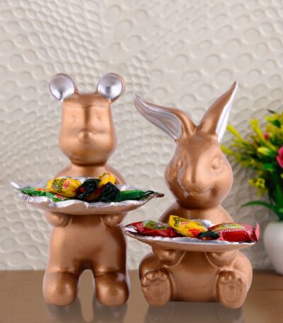 Set of 2 Rabbits in Golden Decorative Showpiece for Home Decor Showpiece | Home Kitchen Decor | Office Decorative Item – 13 cm
