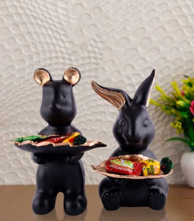 Set of 2 Rabbits in Black Decorative Showpiece for Home Decor Showpiece | Home Kitchen Decor | Office Decorative Item – 13 cm
