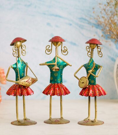 Set of 3 Antique Metal Decorative Tribal Musician Dolls Playing Musical Instrument Handicraft Item for Diwali Gifts | Home & office Decoration