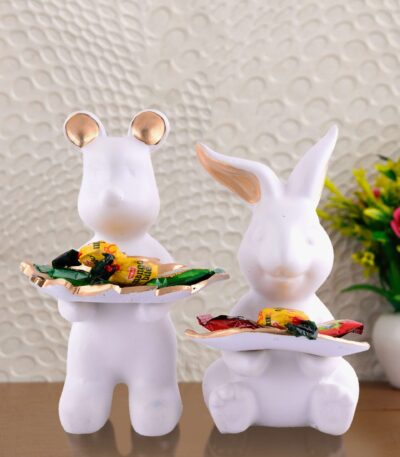 Set of 2 Rabbits in White Decorative Showpiece for Home Decor Showpiece | Home Kitchen Decor | Office Decorative Item – 13 cm